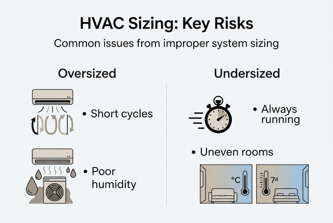 Watch for red flags. A contractor who quotes a system size in the first five minutes without visiting your home hasn't done a proper assessment. Pressure to "go bigger just in case" is another warning sign. Bigger is not safer. It's a path to the short cycling and humidity problems described above.
